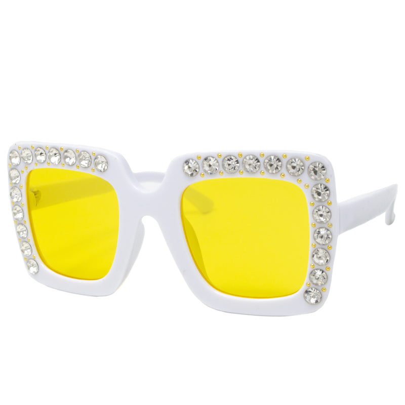 Kids will look cool in these stylish crystal sunglasses. The square shape and encrusted crystals give a modern look that is perfect for any sunny day. UV 400 protection ensures your little one's eyes will stay safe from strong sunlight. Comes with suede carrying pouch.