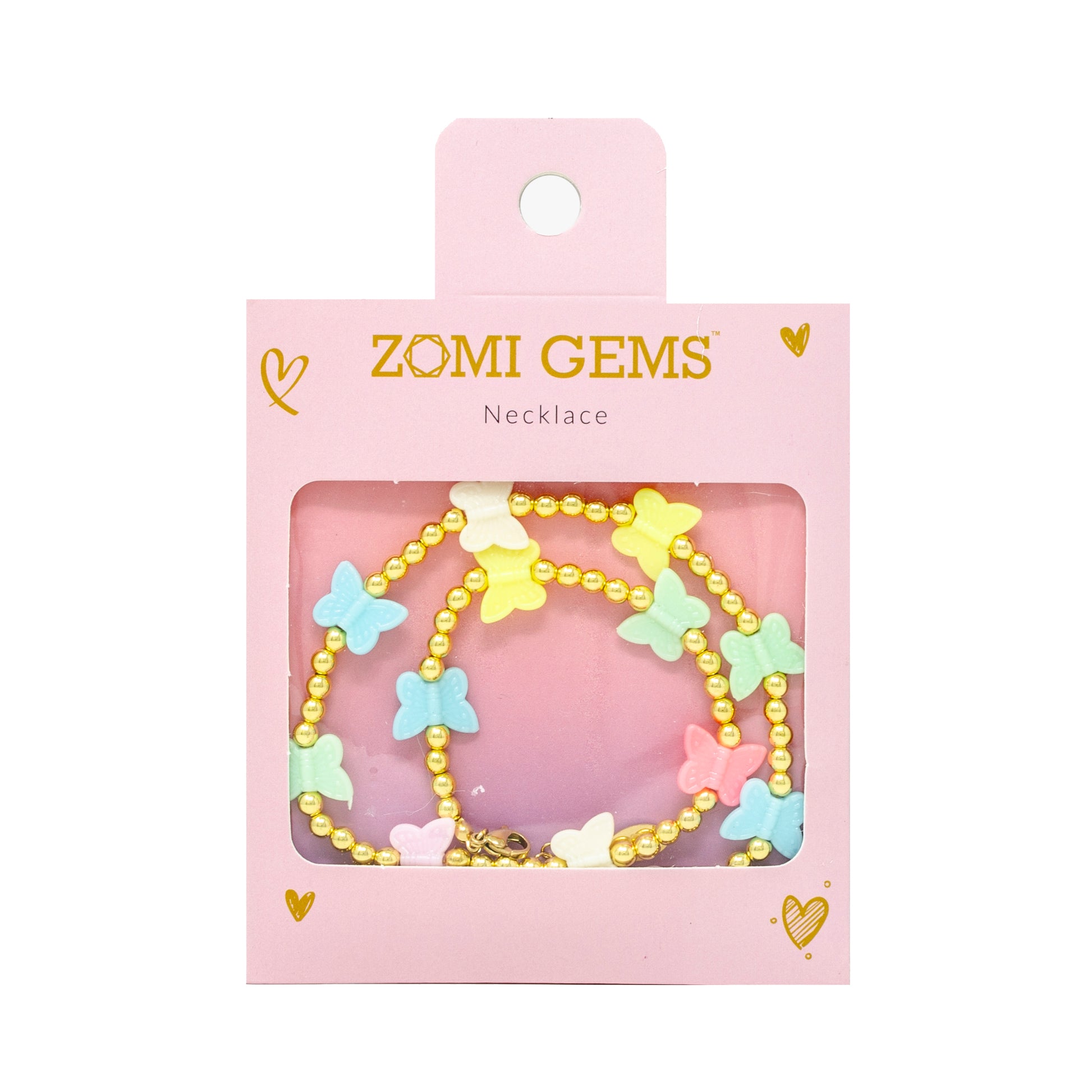This bead necklace for children features colorful butterfly charms. The chain is crafted with high-quality stainless steel beads and finished with a luxurious gold plating, ensuring its durability and longevity.